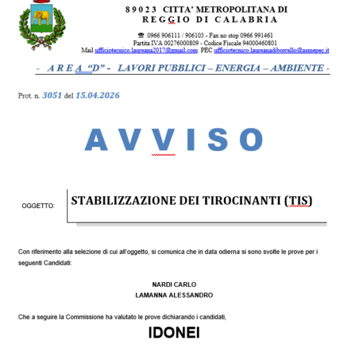 ESITO SELEZIONE STABILIZZAZIONE DEI TIROCINANTI
