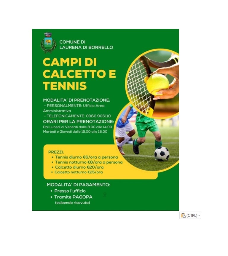 Avviso ai cittadini. Utilizzo campetti di tennis e di calcetto a gestione diretta