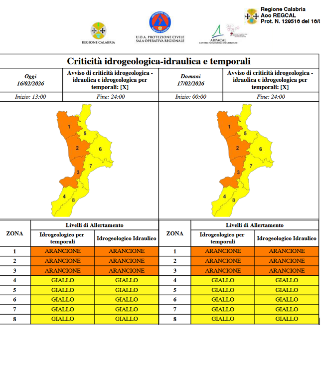 Condizioni meteo di criticità ARANCIONE per i giorni 16 e 17 febbraio 2026