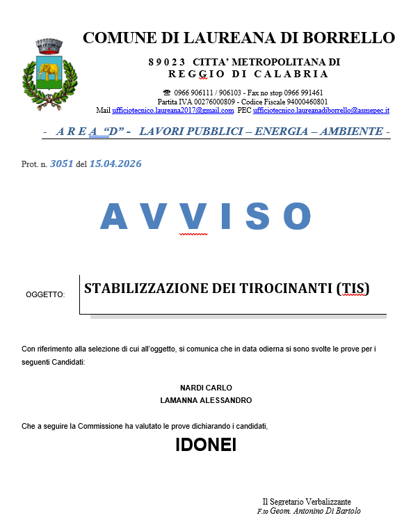 ESITO DELLA SELEZIONE PER LA STABILIZZAZIONE DEI TIROCINANTI